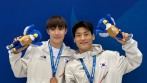 한국 수영 대표팀이 2025 라인-루르 하계 세계대학경기대회(U대회)에서 동메달 2개를 추가했다.김영택(제주도청)과 김지욱(광주광역시체육회)은 20일(현지시간) 독일 베를린에서 개최된 대회 다이빙 남자 10m 싱크로 경기에서 377.64점을 합작해 중국(437.31점)과 독일(400.74점)에 이어 3위에 올랐다.경기 후 김지욱은 "연이어 좋은 성적을 내서 정말 좋다. (김)영택이와 호흡을 맞출 시간이 부족해서 욕심내지 않았는데, 파트너가 너무 잘해줬다. 운도 좋았다"고 돌아봤다.고병진 지도자는 "지욱이가 이전 U대회에서 메달을 하나도 못 따서 무척 아쉬웠다. 마지막 대회 출전인 이번에 메달을 획득해 대견하다"고 칭찬했다.다이빙이 끝난 후 이어